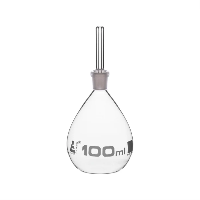 Eisco Scientific Glass Pycnometers are designed for use with a working liquid with well-known density, such as water, to find the ratio of a mass to its volume (density).