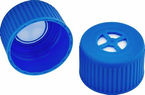 PSLabware Erlenmeyer Shaker Flask Vented Screw Caps are vented with 0.2 µm membranes to increase air transmission and enhance cell growth.