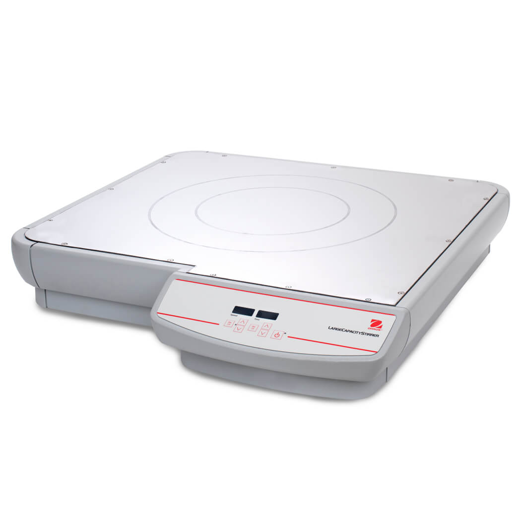 Ohaus Large Volume Magnetic Stirrers offer four models for stirring capacities between 25 to 200L allowing you to choose the right model for your application. The broad top plate surface allows processing of oversized vessels such as carboys for your large volume stirring. The powerful magnetic drive is also capable of mixing highly viscous materials.