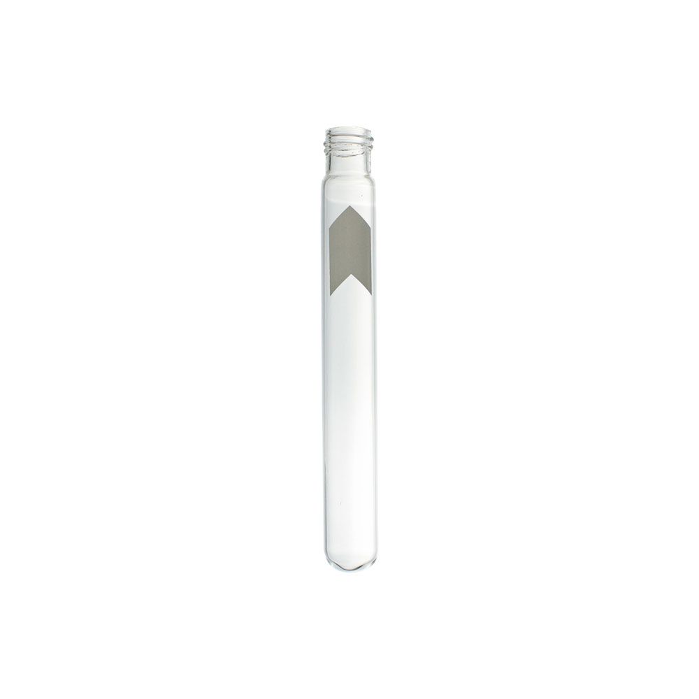 Dimensional tolerances are strictly controlled for a uniform shape, including rounded bottoms and polished tops with smooth edges. Each tube has a chevron-shaped white enamel marking spot. Threaded necks accept a phenolic screw cap, sold seperately. Available in six sizes, from 8 ml to 33 ml.