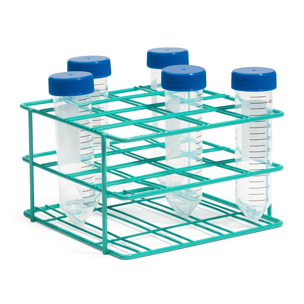 United Scientific™ Heavy-Duty Epoxy Coated Wire Racks are a full range of epoxy coated steel wire racks for tubes including 15 mL and 50 mL centrifuge tubes. The epoxy is a durable consistent coating, and the racks are a rigid construction. The racks are designed with 3 levels keeping the tubes secure; the rack bottom is slotted and helps center the tubes.