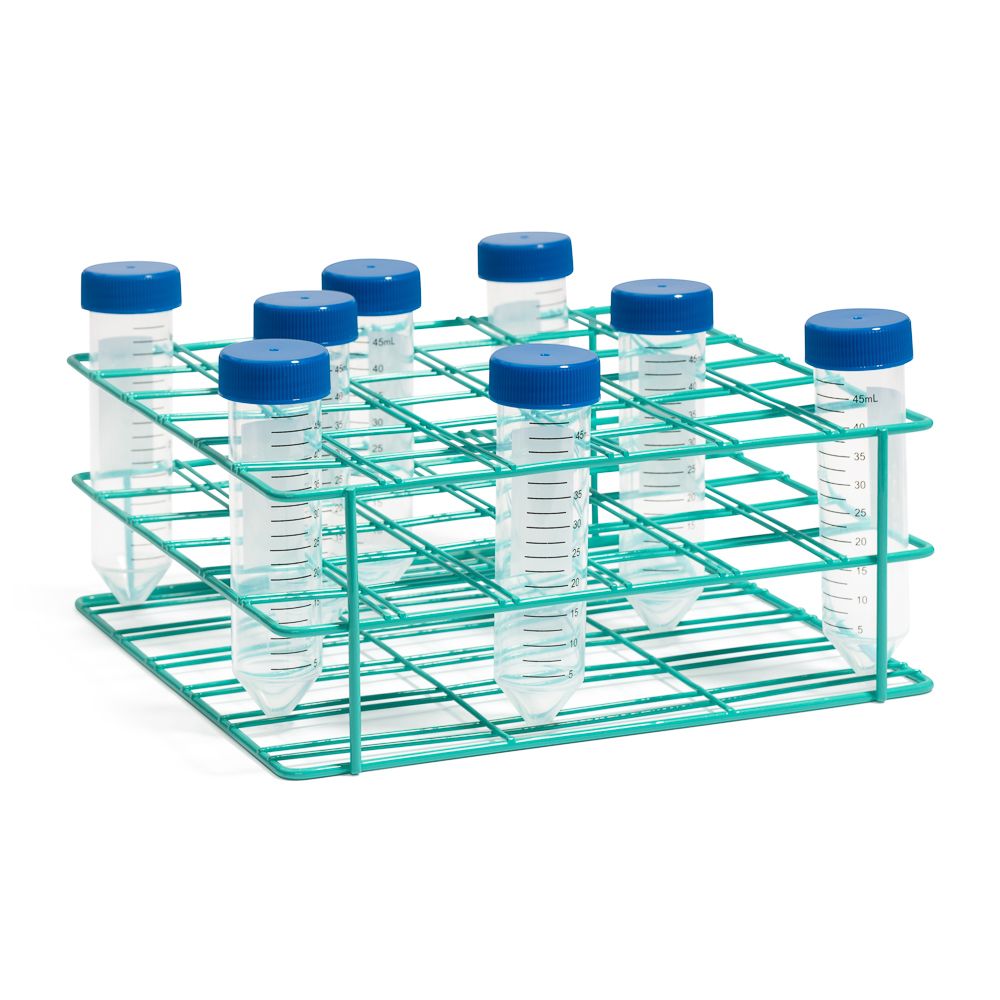 United Scientific™ Heavy-Duty Epoxy Coated Wire Racks are a full range of epoxy coated steel wire racks for tubes including 15 mL and 50 mL centrifuge tubes. The epoxy is a durable consistent coating, and the racks are a rigid construction. The racks are designed with 3 levels keeping the tubes secure; the rack bottom is slotted and helps center the tubes.