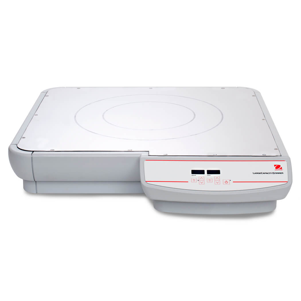 Ohaus Large Volume Magnetic Stirrers offer four models for stirring capacities between 25 to 200L allowing you to choose the right model for your application. The broad top plate surface allows processing of oversized vessels such as carboys for your large volume stirring. The powerful magnetic drive is also capable of mixing highly viscous materials.