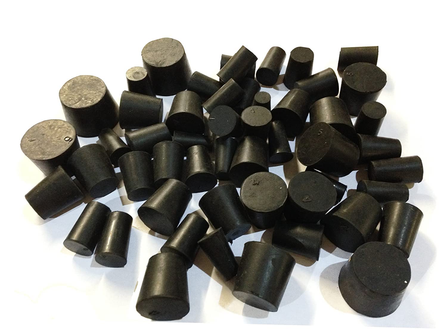 The PSLabware Rubber Stoppers are made of solid natural rubber that stays pliable over a long period of time. Ideal for use with non-aggressive or concentrated solutions. Low sulfur content. Withstand temperatures from –25 to 70°C (–13 to 158°F). Available in solid, one-hole, and two-hole versions. Each stopper has its size marked in raised figures. All stoppers are 25 mm tall. Sold as one-pound bags.